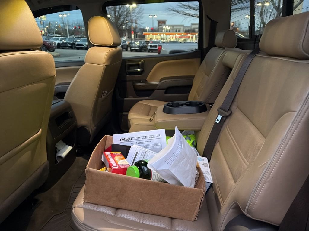 This Sierra 1500 Denali is nicely equipped with Denali Ultimate Package (Chrome Recovery Hooks, Integrated Trailer Brake Controller, Power Sunroof, Tri-Mode Power Steps, and Wheels: 22 Aluminum w/Premium Paint), Enhanced Driver Alert Package (Forward Collision Alert, IntelliBeam Automatic High Beam On/Off Headlight, Lane Keep Assist, and Low Speed Forward Automatic Braking), Preferred Equipment Group 5SA (110-Volt AC Power Outlet, 150 Amp Alternator, 1st & 2nd Row Color-Keyed Carpeted Floor Mats, 2-Speed Active Electronic AutoTrac Transfer Case, 6 Rectangular Chromed Tubular Assist Steps, 8 Multi-Color Customizable Driver Display, Auto-Dimming Inside Rear-View Mirror, Body Color Lower Front Bumper, Body Color Rear Bumper w/Cornersteps, Bose Speaker System, Chrome Bodyside Moldings, Chrome Door Handles, Chrome Mirror Caps, Color-Keyed Carpeting, Deep-Tinted Glass, Driver & Front Passenger Illuminated Vanity Mirrors, Dual-Zone Automatic Climate Control, Electric Rear-Window Defogger, EZ Lift & Lower Tailgate, Front Frame-Mounted Black Recovery Hooks, Heated & Ventilated Front Bucket Seats, Leather Wrapped Heated Steering Wheel, Manual Tilt/Telescoping Steering Column, OnStar 3 Month Guidance Plan, OnStar w/4G LTE, Polished Exhaust Tip, Power Adjustable Pedals, Power Folding & Adjustable Heated Outside Mirrors, Power Sliding Rear Window w/Defogger, Power Windows w/Driver Express Up & Down, Rear 60/40 Folding Bench Seat (Folds Up), Rear Vision Camera, Rear Wheelhouse Liners, Remote Keyless Entry, Remote Locking Tailgate, Remote Vehicle Starter System, Single Slot CD/MP3 Player, Steering Wheel Audio Controls, Theft Deterrent System (Unauthorized Entry), Thin Profile LED Fog Lamps, Ultrasonic Front & Rear Park Assist, and Universal Home Remote), Trailering Equipment, 8-Speed Automatic with Overdrive, 4WD, Cocoa/Dark Sand Leather, 4-Wheel Disc Brakes, 7 Speakers, ABS brakes, Active Noise Cancellation, Adaptive suspension, Adjustable pedals, Air Conditioning, Alloy wheels, AM/FM radio, Auto High-beam Headlights, Auto-dimming door mirrors, Auto-dimming Rear-View mirror, Automatic temperature control, Bodyside moldings, Brake assist, Bumpers: body-color, CD player, Compass, Delay-off headlights, Driver door bin, Driver vanity mirror, Dual front impact airbags, Dual front side impact airbags, Electronic Stability Control, Emergency communication system: OnStar Guidance, Exterior Parking Camera Rear, Floor Mounted Console, Front & Rear All-Weather Floor Mats, Front anti-roll bar, Front Center Armrest w/Storage, Front dual zone A/C, Front fog lights, Front Full Feature Power Reclining Bucket Seats, Front reading lights, Front wheel independent suspension, Fully automatic headlights, Garage door transmitter: HomeLink, HD Radio, Heated door mirrors, Heated front seats, Heated steering wheel, Illuminated entry, Low tire pressure warning, MagneRide Magnetic Ride Control Suspension, Memory seat, Navigation System, Occupant sensing airbag, Outside temperature display, Overhead airbag, Overhead console, Panic alarm, Passenger door bin, Passenger vanity mirror, Perforated Leather Appointed Seat Trim, Power door mirrors, Power driver seat, Power passenger seat, Power steering, Power windows, Radio data system, Radio: AM/FM Stereo w/8 Diagonal Color Touch Nav., Rear reading lights, Rear seat center armrest, Rear step bumper, Rear window defroster, Remote keyless entry, Security system, SiriusXM Satellite Radio, Speed control, Speed-sensing steering, Split folding rear seat, Steering wheel mounted audio controls, Tachometer, Telescoping steering wheel, Tilt steering wheel, Traction control, Trip computer, Turn signal indicator mirrors, Variably intermittent wipers, Ven