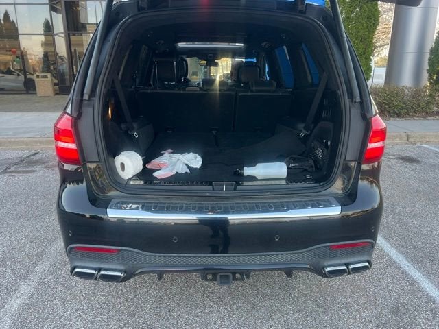 Recent Arrival! Clean CARFAX. Black This GLS 63 AMG® is nicely equipped with 14 Speakers, 3.47 Axle Ratio, 3rd row seats: split-bench, 4-Wheel Disc Brakes, ABS brakes, Adaptive suspension, Air Conditioning, Alloy wheels, Aluminum Trim, AM/FM radio: SiriusXM, Anti-whiplash front head restraints, Apple CarPlay, Auto High-beam Headlights, Auto tilt-away steering wheel, Auto-dimming door mirrors, Auto-dimming Rear-View mirror, Auto-leveling suspension, Automatic temperature control, Bodyside moldings, Brake assist, Bumpers: body-color, CD player, Child-Seat-Sensing Airbag, Compass, Delay-off headlights, Door auto-latch, Driver door bin, Driver vanity mirror, Dual front impact airbags, Dual front side impact airbags, DVD-Audio, Electronic Stability Control, Emergency communication system: mbrace2, Exterior Parking Camera Rear, Four wheel independent suspension, Front anti-roll bar, Front Bucket Seats, Front Center Armrest w/Storage, Front dual zone A/C, Front reading lights, Fully automatic headlights, Garage door transmitter: Homelink, harman/kardon® Logic 7® Surround Sound System, harman/kardon® Speakers, Heated door mirrors, Heated front seats, Heated rear seats, Illuminated entry, Illuminated running boards, Knee airbag, Leather Upholstery, Low tire pressure warning, Memory seat, Navigation system: COMAND®, Occupant sensing airbag, Outside temperature display, Overhead airbag, Panic alarm, Passenger door bin, Passenger vanity mirror, Power adjustable front head restraints, Power door mirrors, Power driver seat, Power Front Seats w/Driver Memory, Power Liftgate, Power moonroof, Power passenger seat, Power steering, Power windows, Premium audio system: COMAND®, Radio: COMAND® System w/Hard Drive Navigation, Rain sensing wipers, Rear air conditioning, Rear anti-roll bar, Rear fog lights, Rear reading lights, Rear seat center armrest, Rear window defroster, Rear window wiper, Remote keyless entry, Roof rack: rails only, Security system, SiriusXM Radio, Speed control, Speed-sensing steering, Speed-Sensitive Wipers, Split folding rear seat, Spoiler, Sport steering wheel, Steering wheel memory, Steering wheel mounted audio controls, Tachometer, Telescoping steering wheel, Tilt steering wheel, Traction control, Trip computer, Turn signal indicator mirrors, Variably intermittent wipers, Ventilated front seats, Weather band radio, and Wheels: 21 AMG® Twin Cross-Spoke. Price does not include licensing costs, registration fees, taxes and dealer doc fee of $899.50 which are to be paid by the consumer. Mileage is EPA Estimated.