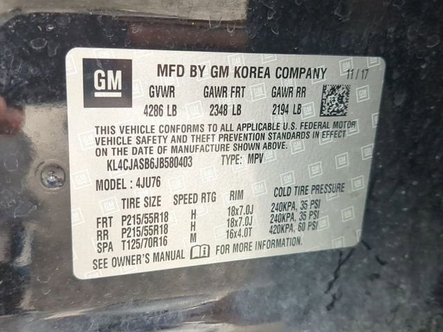 Recent Arrival! Ebony Twilight Metallic This Encore Preferred is nicely equipped with Preferred Equipment Group 1SB, 2-Way Manual Front Passenger Seat Adjuster, 3.53 Final Drive Axle Ratio, 4-Wheel Disc Brakes, 6 Speakers, 6-Speaker Audio System, 6-Way Power Driver Seat Adjuster, ABS brakes, Air Conditioning, Alloy wheels, AM/FM radio: SiriusXM, Apple CarPlay/Android Auto, Brake assist, Bumpers: body-color, Cargo Net, Cloth w/Leatherette Seat Trim, Compass, Delay-off headlights, Driver door bin, Driver vanity mirror, Driver's Seat Mounted Armrest, Dual front impact airbags, Dual front side impact airbags, Electronic Stability Control, Emergency communication system: OnStar Guidance, Exterior Parking Camera Rear, Front anti-roll bar, Front Bucket Seats, Front reading lights, Front wheel independent suspension, Fully automatic headlights, Heated door mirrors, Illuminated entry, Knee airbag, Low tire pressure warning, Occupant sensing airbag, Outside temperature display, Overhead airbag, Panic alarm, Passenger door bin, Passenger vanity mirror, Power door mirrors, Power driver seat, Power steering, Power windows, Radio data system, Radio: Buick Infotainment System AM/FM Stereo, Rear seat center armrest, Rear side impact airbag, Rear window defroster, Rear window wiper, Remote keyless entry, Ride & Handling Suspension, Roof rack: rails only, Security system, SiriusXM Satellite Radio, Speed control, Speed-sensing steering, Split folding rear seat, Spoiler, Steering wheel mounted audio controls, Tachometer, Telescoping steering wheel, Tilt steering wheel, Traction control, Trip computer, Turn signal indicator mirrors, Variably intermittent wipers, and Wheels: 18 Machined-Face Alloy. Price does not include licensing costs, registration fees, taxes and dealer doc fee of $899.50 which are to be paid by the consumer. Mileage is EPA Estimated.