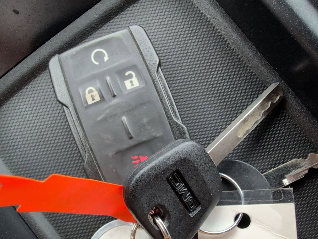 This Sierra 1500 SLE is nicely equipped with Off-Road Suspension Package (Hill Descent Control and Wheels: 18 x 8.5 Bright Machined Aluminum), Preferred Equipment Group 3SA (150 Amp Alternator, 2-Speed Active Electronic AutoTrac Transfer Case, 4.2 Diagonal Color Display Driver Info Center, Body Color Bodyside Moldings, Body Color Door Handles, Body Color Power Adjustable Heated Outside Mirrors, Body-Color Mirror Caps, Color-Keyed Carpeting, Deep-Tinted Glass, Driver & Front Passenger Illuminated Vanity Mirrors, EZ Lift & Lower Tailgate, Front Frame-Mounted Black Recovery Hooks, GMC 4G LTE, GMC Connected Access, Heavy-Duty Rear Locking Differential, Leather Wrapped Steering Wheel w/Cruise Controls, LED Cargo Box Lighting, OnStar & GMC Connected Services Capable, Power Windows w/Driver Express Up & Down, Rear 60/40 Folding Bench Seat (Folds Up), Rear Wheelhouse Liners, Remote Keyless Entry, Remote Locking Tailgate, Rubberized-Vinyl Front Floor Mats, Rubberized-Vinyl Rear Floor Mats, Single Slot CD/MP3 Player, Single-Zone Air Conditioning, and Steering Wheel Audio Controls), SLE Value Package (10-Way Power Driver's Seat Adjuster, 110-Volt AC Power Outlet, Dual-Zone Automatic Climate Control, Electric Rear-Window Defogger, Remote Vehicle Starter System, Theft Deterrent System (Unauthorized Entry), Thin Profile LED Fog Lamps, and Universal Home Remote), Trailering Equipment, 6-Speed Automatic Electronic with Overdrive, 4WD, Dark Ash Seats With Jet Black Interior Accents Cloth, 3.42 Rear Axle Ratio, 4-Wheel Disc Brakes, 40/20/40 Front Split Bench Seat, 6 Speakers, 6-Speaker Audio System, ABS brakes, Air Conditioning, Alloy wheels, AM/FM radio: SiriusXM, Auxiliary External Transmission Oil Cooler, Bodyside moldings, Brake assist, Bumpers: chrome, CD player, Cloth Seat Trim, Compass, Delay-off headlights, Driver door bin, Driver vanity mirror, Dual front impact airbags, Dual front side impact airbags, Electronic Stability Control, Exterior Parking Camera Rear, Front anti-roll bar, Front Center Armrest w/Storage, Front reading lights, Front wheel independent suspension, Fully automatic headlights, HD Radio, Heated door mirrors, Heavy Duty Suspension, High-Intensity Discharge Headlights, Illuminated entry, Low tire pressure warning, Manual Tilt/Telescoping Steering Column, Occupant sensing airbag, Outside temperature display, Overhead airbag, Overhead console, Panic alarm, Passenger door bin, Passenger vanity mirror, Power door mirrors, Power steering, Power windows, Premium audio system: GMC Infotainment System, Radio data system, Radio: AM/FM/GMC Infotainment System, Rear reading lights, Rear step bumper, Remote keyless entry, SiriusXM Satellite Radio, Speed control, Speed-sensing steering, Split folding rear seat, Steering wheel mounted audio controls, Tachometer, Tilt steering wheel, Traction control, Trip computer, Variably intermittent wipers, Voltmeter, and Wheels: 17 x 8 Bright Machined Aluminum. Price does not include licensing costs, registration fees, taxes and dealer doc fee of $899.50 which are to be paid by the consumer.