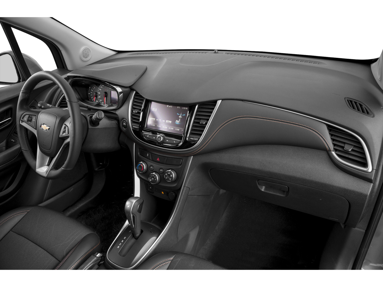 This Trax LT is nicely equipped with 16 Aluminum Wheels, 2 USB Ports w/Auxiliary Input Jack, 2-Way Manual Front Passenger Seat Adjuster, 3.53 Final Drive Axle Ratio, 4-Way Manual Driver Seat Adjuster, 4-Wheel Disc Brakes, 6 Speakers, 6-Speaker Audio System Feature, ABS brakes, Air Conditioning, All-Wheel Drive Chassis, Alloy wheels, AM/FM radio: SiriusXM, Apple CarPlay/Android Auto, Brake assist, Bumpers: body-color, Compass, Delay-off headlights, Deluxe Cloth Seat Trim, Driver door bin, Driver vanity mirror, Driver's Seat Mounted Armrest, Dual front impact airbags, Dual front side impact airbags, Electronic Stability Control, Emergency communication system: OnStar and Chevrolet connected services capable, Exterior Parking Camera Rear, Front anti-roll bar, Front Bucket Seats, Front Bucket Seats w/Driver Power Lumbar, Front reading lights, Front wheel independent suspension, Fully automatic headlights, Heated door mirrors, Illuminated entry, Knee airbag, Low tire pressure warning, Occupant sensing airbag, Outside temperature display, Overhead airbag, Panic alarm, Passenger door bin, Passenger vanity mirror, Power door mirrors, Power steering, Power windows, Premium audio system: Chevrolet MyLink, Radio data system, Radio: Chevrolet Infotainment 3 System, Rear seat center armrest, Rear side impact airbag, Rear window defroster, Rear window wiper, Remote keyless entry, Roof rack: rails only, Security system, SiriusXM Radio, Speed control, Speed-sensing steering, Split folding rear seat, Spoiler, Steering wheel mounted audio controls, Tachometer, Telescoping steering wheel, Tilt steering wheel, Traction control, Trip computer, and Variably intermittent wipers. Price does not include licensing costs, registration fees, taxes and dealer doc fee of $899.50 which are to be paid by the consumer.