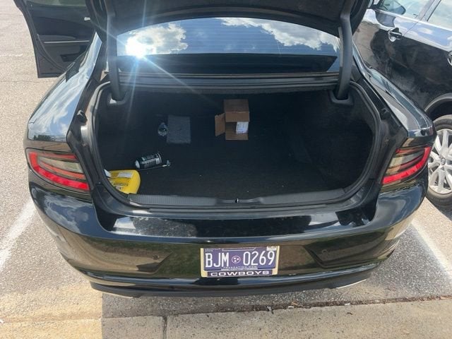 Recent Arrival! Pitch Black Clearcoat Black Cloth. This Charger SXT is nicely equipped with Blacktop Package (Black 1-Piece Performance Spoiler, Dodge Grille Badge, Gloss Black Fascia Applique, Gloss Black I/P Cluster Trim Rings, and Satin Black Charger Decklid Badge), Quick Order Package 29G, Black Cloth, 4-Wheel Disc Brakes, 6 Speakers, ABS brakes, Air Conditioning, Alloy wheels, AM/FM radio: SiriusXM, Anti-whiplash front head restraints, Apple CarPlay/Android Auto, Brake assist, Bumpers: body-color, Cloth Sport Seat, Compass, Delay-off headlights, Driver door bin, Driver vanity mirror, Dual front impact airbags, Dual front side impact airbags, Electronic Stability Control, Four wheel independent suspension, Front anti-roll bar, Front Bucket Seats, Front Center Armrest, Front dual zone A/C, Front reading lights, Fully automatic headlights, Illuminated entry, Knee airbag, Leather Shift Knob, Low tire pressure warning, Occupant sensing airbag, Outside temperature display, Overhead airbag, Overhead console, Panic alarm, ParkView Rear Back-Up Camera, Passenger door bin, Passenger vanity mirror, Power 4-Way Driver Lumbar Adjust, Power door mirrors, Power driver seat, Power steering, Power windows, Radio: Uconnect 4 w/7 Display, Rear anti-roll bar, Rear Armrest w/Cupholder Seat, Rear reading lights, Rear seat center armrest, Rear window defroster, Remote keyless entry, Speed control, Speed-Sensitive Wipers, Split folding rear seat, Steering wheel mounted audio controls, Tachometer, Telescoping steering wheel, Tilt steering wheel, Traction control, Trip computer, Variably intermittent wipers, Wheels: 17 x 7.0 Painted Cast Aluminum, and Wheels: 20 x 8.0 Black Noise Painted. Price does not include licensing costs, registration fees, taxes and dealer doc fee of $899.50 which are to be paid by the consumer. Mileage is EPA Estimated.