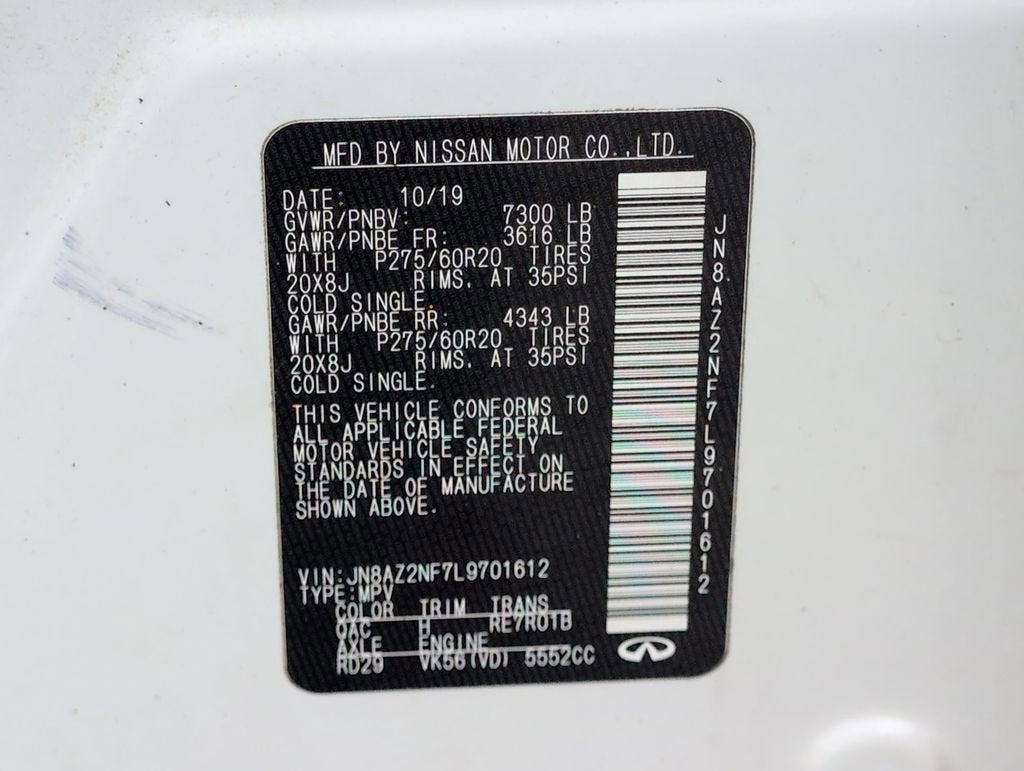 This QX80 LUXE is nicely equipped with All-Season Package (All-Season Floor Mats and Cargo Protector), Cargo Package (First-Aid Kit, High-Density Non-Slip Rear Cargo Carpet, and Nylon-Cord Cargo Net), 13 Speakers, 2.937 Axle Ratio, 3rd row seats: split-bench, 4-Wheel Disc Brakes, ABS brakes, Air Conditioning, Alloy wheels, AM/FM radio: SiriusXM, Anti-whiplash front head restraints, Apple CarPlay/Android Auto, Auto High-beam Headlights, Auto tilt-away steering wheel, Auto-dimming door mirrors, Auto-dimming Rear-View mirror, Auto-leveling suspension, Automatic temperature control, Blind Spot Warning, Brake assist, Bumpers: body-color, CD player, Compass, Delay-off headlights, Driver door bin, Driver vanity mirror, Dual front impact airbags, Dual front side impact airbags, DVD-Audio, Electronic Stability Control, Emergency communication system: INFINITI Connection, Four wheel independent suspension, Front anti-roll bar, Front Bucket Seats, Front Center Armrest, Front dual zone A/C, Front fog lights, Front reading lights, Fully automatic headlights, Garage door transmitter: HomeLink, Heated door mirrors, Heated Front Bucket Seats, Heated front seats, Heated steering wheel, Illuminated entry, Leather Shift Knob, Leather steering wheel, Leather-Appointed Seats, Literature Kit, Low tire pressure warning, Memory seat, Navigation system: INFINITI InTouch Navigation, Occupant sensing airbag, Outside temperature display, Overhead airbag, Overhead console, Panic alarm, Passenger door bin, Passenger vanity mirror, Power door mirrors, Power driver seat, Power Liftgate, Power moonroof, Power passenger seat, Power steering, Power windows, Radio data system, Radio: AM/FM/HD w/Single In-Dash CD Player & MP3, Rain sensing wipers, Rear air conditioning, Rear anti-roll bar, Rear audio controls, Rear reading lights, Rear seat center armrest, Rear window defroster, Rear window wiper, Reclining 3rd row seat, Remote keyless entry, Roof Rail Cross Bars, Security system, Speed control, Speed-sensing steering, Split folding rear seat, Spoiler, Steering wheel memory, Steering wheel mounted audio controls, Tachometer, Telescoping steering wheel, Tilt steering wheel, Traction control, Trip computer, Turn signal indicator mirrors, Variably intermittent wipers, Voltmeter, and Wheels: 20 x 8.0 Aluminum-Alloy. Price does not include licensing costs, registration fees, taxes and dealer doc fee of $899.50 which are to be paid by the consumer.