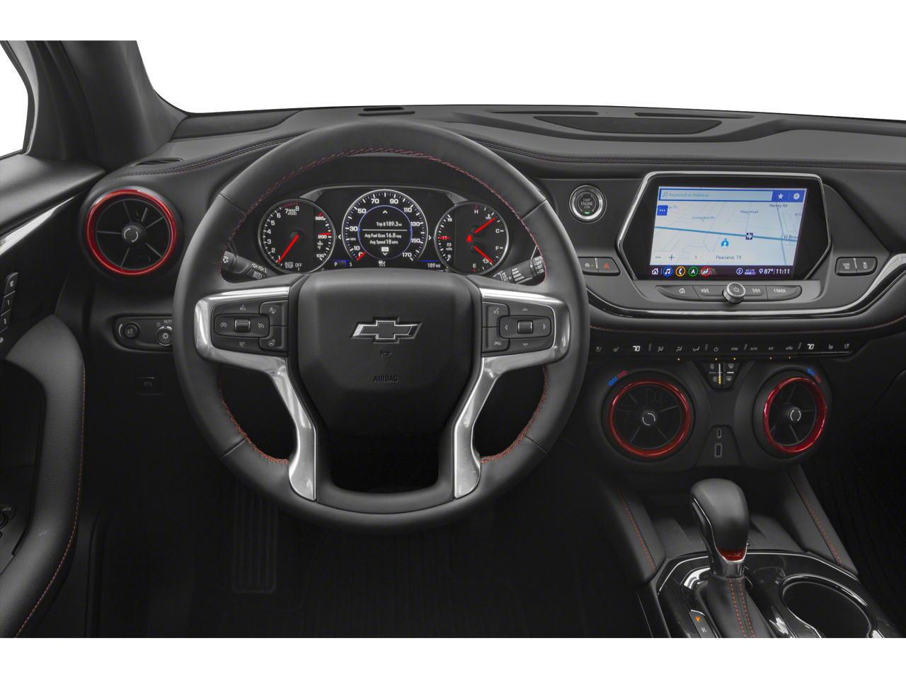 Recent Arrival! CARFAX One-Owner. Clean CARFAX. Red Hot This Blazer RS is nicely equipped with Enhanced Convenience Package (Heated Rear Outboard Seating Positions, Memory Settings For Driver Seat & Exterior Mirrors, Power Tilt & Telescoping Steering Column, and Ventilated Driver & Front Passenger Seats), Preferred Equipment Group 1RS (Heated Driver & Front Passenger Seats and Heated Steering Wheel), Trailering Equipment (170 Amp Alternator, Heavy-Duty Cooling System, Hitch Guidance, and Hitch View), 3.49 Final Drive Axle Ratio, 4-Wheel Disc Brakes, 6 Speakers, 6-Speaker Audio System Feature, 6-Way Power Front Passenger Seat Adjuster, ABS brakes, Air Conditioning, Alloy wheels, AM/FM radio: SiriusXM with 360L, Apple CarPlay/Android Auto, Auto High-beam Headlights, Auto-dimming door mirrors, Auto-dimming Rear-View mirror, Automatic temperature control, Brake assist, Bumpers: body-color, Child-Seat-Sensing Airbag, Compass, Delay-off headlights, Driver door bin, Driver vanity mirror, Dual front impact airbags, Dual front side impact airbags, Electronic Stability Control, Emergency communication system: OnStar and Chevrolet connected services capable, Exterior Parking Camera Rear, Four wheel independent suspension, Front anti-roll bar, Front Bucket Seats, Front Center Armrest, Front dual zone A/C, Front reading lights, Fully automatic headlights, Garage door transmitter, Heated door mirrors, Heated front seats, Heated steering wheel, High-Intensity Discharge Headlights, Illuminated entry, Knee airbag, Leather Shift Knob, Low tire pressure warning, Navigation System, Not Equipped w/Driver & Fr Passenger Heated Seats, Not Equipped w/Heated Rear Outboard Seats, Not Equipped w/Heated Steering Wheel, Not Equipped w/Rear Park Assist, Occupant sensing airbag, Outside temperature display, Overhead airbag, Overhead console, Panic alarm, Passenger door bin, Passenger vanity mirror, Perforated Leather-Appointed Seat Trim, Power door mirrors, Power driver seat, Power Liftgate, Power Panoramic Tilt-Sliding Sunroof, Power passenger seat, Power steering, Power windows, Radio data system, Radio: Chevrolet Infotainment 3 Plus System, Rear anti-roll bar, Rear reading lights, Rear seat center armrest, Rear window defroster, Rear window wiper, Remote keyless entry, Ride & Handling Suspension, Security system, SiriusXM w/360L, Speed control, Speed-sensing steering, Split folding rear seat, Spoiler, Steering wheel mounted audio controls, Tachometer, Telescoping steering wheel, Tilt steering wheel, Traction control, Trip computer, Turn signal indicator mirrors, Variably intermittent wipers, Voltmeter, Wheels: 20 Dark Android Machined-Face Aluminum, and Wheels: 21 Gloss Black Aluminum. Price does not include licensing costs, registration fees, taxes and dealer doc fee of $899.50 which are to be paid by the consumer. Mileage is EPA Estimated.
