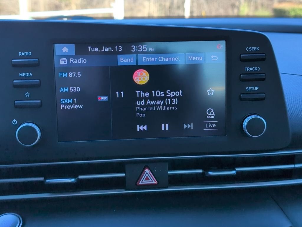 This Elantra SEL is nicely equipped with Option Group 01, 16 x 6.5J Alloy Wheels, 4-Wheel Disc Brakes, 6 Speakers, ABS brakes, Air Conditioning, Alloy wheels, AM/FM radio: SiriusXM, Apple CarPlay & Android Auto, Auto High-beam Headlights, Automatic temperature control, Brake assist, Bumpers: body-color, Cargo Net, Carpeted Floor Mats, Cloth Seat Trim, Delay-off headlights, Driver door bin, Driver vanity mirror, Dual front impact airbags, Dual front side impact airbags, Electronic Stability Control, Emergency communication system: Blue Link Connected Car Service (3-year complimentary subscription), Exterior Parking Camera Rear, Front anti-roll bar, Front Bucket Seats, Front Center Armrest, Front dual zone A/C, Front reading lights, Front wheel independent suspension, Fully automatic headlights, Illuminated entry, Low tire pressure warning, Mudguards, Occupant sensing airbag, Outside temperature display, Overhead airbag, Overhead console, Panic alarm, Passenger door bin, Passenger vanity mirror, Power door mirrors, Power steering, Power windows, Radio: AM/FM/HD/SiriusXM Display Audio, Rear Bumper Applique, Rear window defroster, Remote keyless entry, Security system, Speed control, Speed-sensing steering, Steering wheel mounted audio controls, Tachometer, Telescoping steering wheel, Tilt steering wheel, Traction control, Trip computer, and Variably intermittent wipers. Price does not include licensing costs, registration fees, taxes and dealer doc fee of $899.50 which are to be paid by the consumer.