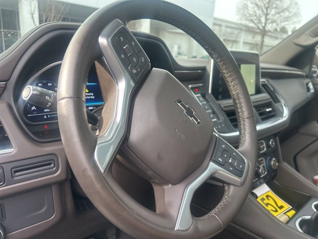 This Tahoe Z71 is nicely equipped with Driver Alert Package (Lane Change Alert w/Side Blind Zone Alert and Rear Cross Traffic Alert), Luxury Package (2nd Row Pwr Release 60/40 Split-Folding Bench Seat, 3rd Row 60/40 Power-Folding Split-Bench Seat, HD Surround Vision, Heated 2nd Row Outboard Seats, Heated Steering Wheel, Memory Settings, Outside Heated Power-Adjustable Mirrors, Power Tilt & Telescopic Steering Column, and Rear Pedestrian Alert), Preferred Equipment Group 2Z7 (1st & 2nd Row Color-Keyed Carpeted Floor Mats, 2-Speed Active Electronic AutoTrac Transfer Case, Auto-Dimming Inside Rear-View Mirror, Black Tubular Assist Steps, Bose 9-Speaker Stereo Audio System Feature, Bright Front & Rear Door Sill Plates, Color-Keyed Carpeting Floor Covering, Driver & Front Outboard Passenger Airbags, Enhanced Driver Information Center, Floor Console w/Storage Area, Front High-Approach Angle Fascia, Hands-Free Rear Power Programmable Liftgate, Hill Descent Control, Infotainment Display, LED Daytime Running Lamps, Memory Settings for Driver, Red Horizontal-Mounted Recovery Hooks, Remote Start, SiriusXM Radio w/360L, Universal Home Remote, Wireless Charging, and Wrapped Steering Wheel), 4WD, Gideon/Very Dark Atmosphere Leather, 10-Way Power Driver & Passenger Seat Adjusters, 1st, 2nd & 3rd Rows All-Weather Floor Liners (LPO), 3.23 Rear Axle Ratio, 3rd row seats: split-bench, 4-Wheel Disc Brakes, 9 Speakers, ABS brakes, Air Conditioning, Alloy wheels, AM/FM radio: SiriusXM with 360L, Apple CarPlay/Android Auto, Auto High-beam Headlights, Auto-dimming Rear-View mirror, Automatic temperature control, Brake assist, Bumpers: body-color, Compass, Delay-off headlights, Driver door bin, Driver vanity mirror, Dual front impact airbags, Dual front side impact airbags, Dual-Pane Power Panoramic Sunroof, Electronic Stability Control, Emergency communication system: OnStar and Chevrolet connected services capable, Four wheel independent suspension, Front anti-roll bar, Front Bucket Seats, Front Center Armrest, Front dual zone A/C, Front High-Back Reclining Bucket Seats, Front reading lights, Fully automatic headlights, Garage door transmitter, Heated door mirrors, Heated Driver & Front Passenger Seats, Heated front seats, Illuminated entry, Leather-Appointed Seat Trim, Low tire pressure warning, Memory seat, Navigation System, Occupant sensing airbag, Outside temperature display, Overhead airbag, Overhead console, Panic alarm, Passenger door bin, Passenger vanity mirror, Power door mirrors, Power driver seat, Power Liftgate, Power passenger seat, Power Release 2nd Row Bucket Seats, Power steering, Power windows, Premium audio system: Chevrolet Infotainment 3 Premium, Premium Smooth Ride Suspension, Radio: Chevrolet Infotainment 3 Premium System, Rain sensing wipers, Rear air conditioning, Rear anti-roll bar, Rear reading lights, Rear seat center armrest, Rear window defroster, Rear window wiper, Remote keyless entry, Roof rack: rails only, Security system, Speed control, Speed-sensing steering, Split folding rear seat, Spoiler, Steering wheel mounted audio controls, Tachometer, Telescoping steering wheel, Tilt steering wheel, Traction control, Trip computer, Variably intermittent wipers, Voltmeter, and Wheels: 20 x 9 Machined Aluminum. Price does not include licensing costs, registration fees, taxes and dealer doc fee of $899.50 which are to be paid by the consumer.
