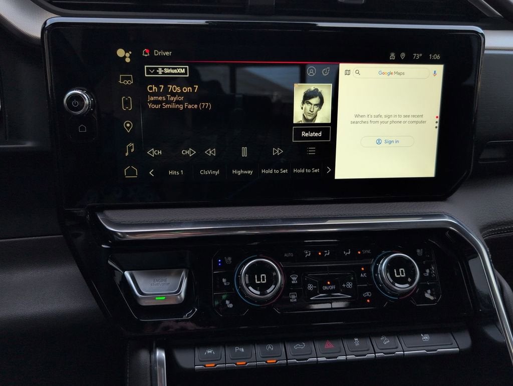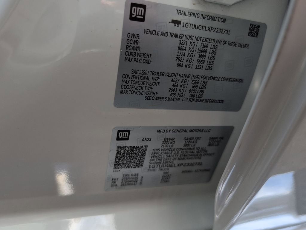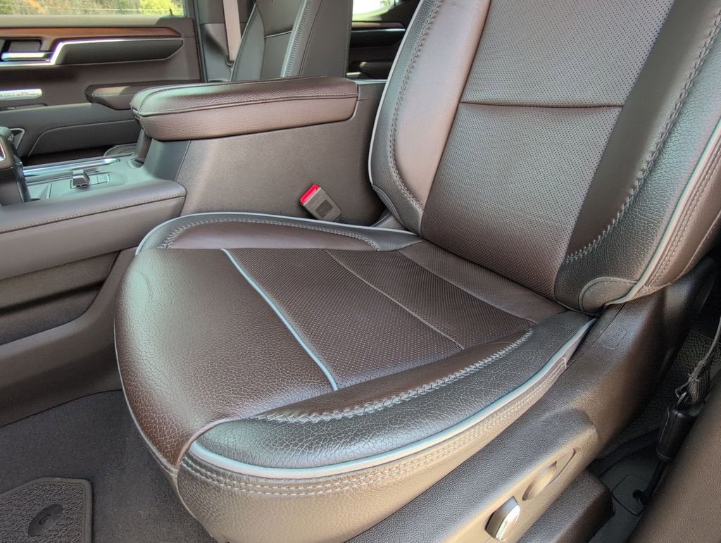 This Sierra 1500 Denali is nicely equipped with Preferred Equipment Group 5SA (120-Volt Bed Mounted Power Outlet, 120-Volt Instrument Panel Power Outlet, 170 Amp Alternator, 2 Charge/Data USB Ports Inside Center Console, 2 Type-C Charge-Only Rear USB Ports, 2 USB Ports, Auto-Locking Rear Differential, Auxiliary External Transmission Oil Cooler, Bed View Camera, Chrome Header w/Signature Denali Chrome Grille, Chrome Recovery Hooks, Chrome Wheel To Wheel Assist Steps, Color-Keyed Carpeting Floor Covering, Compass, Deep-Tinted Glass, Electric Rear-Window Defogger, Electrical Steering Column Lock, Floor-Mounted Center Console, Front Rainsensing Wipers, GMC Connected Access Capable, HD Surround Vision, Heated 2nd Row Outboard Seats, Heated Driver & Front Outboard Passenger Seating, Heavy-Duty Air Filter, Hill Descent Control, Hitch Guidance w/Hitch View, In-Vehicle Trailering App, Integrated Trailer Brake Controller, Keyless Open & Start, LED Cargo Area Lighting, OnStar & GMC Connected Services Capable, Perimeter Lighting, Power Door Locks, Power Front Passenger Windows w/Express Up/Down, Power Front Windows w/Driver Express Up/Down, Power Rake & Telescoping Steering Column, Power Rear Windows w/Express Down, Power Sliding Rear Window w/Rear Defogger, Premium Bose 7-Speaker Sound System, Push Button Start, Rear Cross Traffic Braking, Rear Pedestrian Detection, Rear Wheelhouse Liners, Remote Vehicle Starter System, SiriusXM w/360L, Spray-On Pickup Bed Liner w/Denali Logo, Steering Wheel Audio Controls, Theft Deterrent System (Unauthorized Entry), Trailer Camera Provisions, Trailer Side Blind Zone Alert, Ultrasonic Front & Rear Park Assist, Universal Home Remote, Ventilated Driver & Front Passenger Seats, Wi-Fi Hotspot Capable, Wireless Charging, and Wireless Phone Projection), Trailering Package (Hitch Guidance), GM Certified, 10-Speed Automatic, 4WD, Atmosphere/Brownstone Leather, 10-Way Power Driver Seat Adjuster w/Lumbar, 10-Way Power Passenger Seat Adjuster w/Lumbar, 3.23 Rear Axle Ratio, 4-Wheel Disc Brakes, 7 Speakers, ABS brakes, Adaptive suspension, Air Conditioning, Alloy wheels, AM/FM radio, Apple CarPlay/Android Auto, Auto High-beam Headlights, Auto-dimming door mirrors, Auto-dimming Rear-View mirror, Automatic Emergency Braking, Automatic temperature control, Brake assist, Buckle to Drive, Bumpers: body-color, Delay-off headlights, Denali Premium Suspension w/Adaptive Ride Control, Driver door bin, Driver Memory, Driver vanity mirror, Dual front impact airbags, Dual front side impact airbags, Electronic Stability Control, Emergency communication system: OnStar and GMC connected services capable, Following Distance Indicator, Forge Perforated Leather Seat Trim, Forward Collision Alert, Front anti-roll bar, Front Bucket Seats, Front Center Armrest, Front dual zone A/C, Front fog lights, Front Pedestrian Braking, Front reading lights, Front wheel independent suspension, Fully automatic headlights, Garage door transmitter, Genuine wood console insert, Genuine wood dashboard insert, Genuine wood door panel insert, Heated door mirrors, Heated front seats, Heated rear seats, Heated steering wh