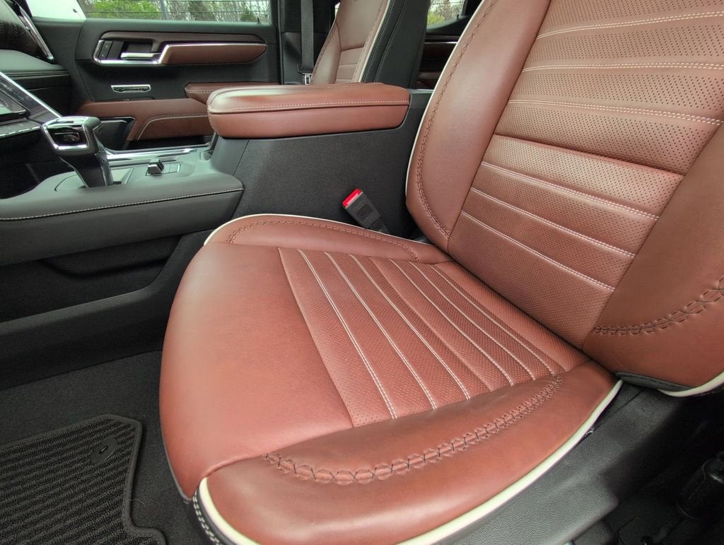This Sierra 1500 Denali Ultimate is nicely equipped with Preferred Equipment Group 5SB (120-Volt Bed Mounted Power Outlet, 120-Volt Interior Power Outlet, 2 Charge/Data USB Ports Inside Center Console, 2 Type-C Charge-Only Rear USB Ports, 2 USB Ports, Auto-Locking Rear Differential, Bed View Camera, Bose Premium Series w/12-Speaker System, Chrome Recovery Hooks, Color-Keyed Carpeting Floor Covering, Deep-Tinted Glass, Electric Rear-Window Defogger, Floor-Mounted Center Console, Front Rain-Sensing Wipers, GMC Connected Access Capable, HD Surround Vision, Heated 2nd Row Outboard Seats, Heated Driver & Front Outboard Passenger Seating, Heavy-Duty Air Filter, Hill Descent Control, Hitch View, In-Vehicle Trailering System App, Integrated Trailer Brake Controller, Keyless Open & Start, LED Cargo Area Lighting, Multicolor 15 Diagonal Head-Up Display, MultiPro Tailgate Audio System by Kicker (LPO), OnStar & GMC Connected Services Capable, Perimeter Lighting, Power Door Locks, Power Front Passenger Windows w/Express Up/Down, Power Front Windows w/Driver Express Up/Down, Power Rake & Telescoping Steering Column, Power Rear Windows w/Express Down, Power Sliding Rear Window w/Rear Defogger, Power Sunroof, Push Button Start, Rear Cross Traffic Braking, Rear Pedestrian Detection, Rear Wheelhouse Liners, Remote Vehicle Starter System, SiriusXM w/360L, Spray-On Pickup Bedliner w/Denali Logo, Steering Wheel Audio Controls, Theft Deterrent System (Unauthorized Entry), Trailer Camera Provisions, Trailer Side Blind Zone Alert, Trailer Tire Pressure Monitor System, Ultrasonic Front & Rear Park Assist, Universal Home Remote, Vader Chrome Header w/Signature Denali Grille, Ventilated Driver & Front Passenger Seats, Wi-Fi Hotspot Capable, and Wireless Charging), Trailering Package (Hitch Guidance), 10-Speed Automatic, 4WD, Alpine Umber Leather, 12 Speakers, 16-Way Power Driver Seat Adjuster w/Lumbar, 16-Way Power Passenger Seat Adjuster w/Lumbar, 170 Amp Alternator, 3.23 Rear Axle Ratio, 4-Wheel Disc Brakes, ABS brakes, Adaptive suspension, Air Conditioning, Alloy wheels, AM/FM radio: SiriusXM with 360L, Apple CarPlay/Android Auto, Auto High-beam Headlights, Auto-dimming door mirrors, Auto-dimming Rear-View mirror, Automatic temperature control, Body Color Wheel Arch Moldings (LPO), Brake assist, Buckle to Drive, Bumpers: body-color, Carbon Fiber Composite Bed, Compass, Delay-off headlights, Denali Premium Suspension w/Adaptive Ride Control, Driver door bin, Driver Memory, Driver vanity mirror, Dual Active Exhaust, Dual front impact airbags, Dual front side impact airbags, Electronic Stability Control, Emergency communication system: OnStar and GMC connected services capable, Enhanced Automatic Emergency Braking, Following Distance Indicator, Forward Collision Alert, Front anti-roll bar, Front Bucket Seats, Front Center Armrest, Front dual zone A/C, Front fog lights, Front Pedestrian Braking, Front reading lights, Front wheel independent suspension, Full Grain Leather Seat Trim, Fully automatic headlights, Garage door transmitter, Genuine wood console insert, Genuine wood dashboard insert, Genuine wood door panel insert, GMC MultiPro Tailgate Step Lights (LPO), Heads-Up Display, Heated door mirrors, Heated front seats, Heated rear seats, Heated steering wheel, Illuminated entry, IntelliBeam Automatic High Beam On/Off, Lane Keep Assist w/Lane Departure Warning, Low tire pressure warning, Memory seat, Navigation System, Occupant sensing airbag, Outside temperature display, Overhead airbag, Overhead console, Panic alarm, Passenger door bin, Passenger vanity mirror, Power door mirrors, Power driver seat, Power moonroof, Power passenger seat, Power steering, Power windows, Premium audio system: GMC Infotainment Sy