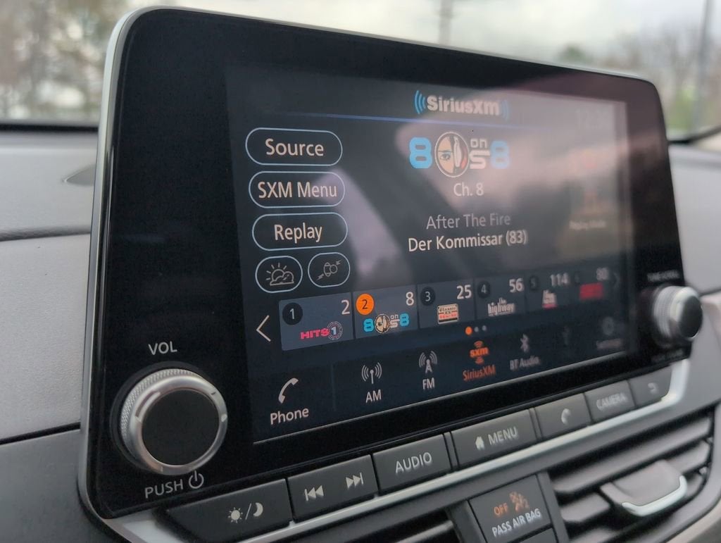 This Altima 2.5 SV is nicely equipped with CVT with Xtronic, 17 Alloy Wheels, 4-Wheel Disc Brakes, 6 Speakers, ABS brakes, Air Conditioning, Alloy wheels, AM/FM radio: SiriusXM, Auto High-beam Headlights, Blind Spot Warning, Brake assist, Bumpers: body-color, Cloth Seat Trim, Delay-off headlights, Driver door bin, Driver vanity mirror, Dual front impact airbags, Dual front side impact airbags, Electronic Stability Control, Floor Mats/Trunk Mat/Hideaway Net, Four wheel independent suspension, Front anti-roll bar, Front Bucket Seats, Front Center Armrest, Front reading lights, Fully automatic headlights, Illuminated entry, Knee airbag, Low tire pressure warning, NissanConnect featuring Apple CarPlay, Occupant sensing airbag, Outside temperature display, Overhead airbag, Overhead console, Panic alarm, Passenger door bin, Passenger vanity mirror, Power door mirrors, Power driver seat, Power steering, Power windows, Radio data system, Radio: AM/FM Audio System, Rear anti-roll bar, Rear Parking Sensors, Rear reading lights, Rear seat center armrest, Rear side impact airbag, Rear window defroster, Remote keyless entry, Security system, Speed control, Speed-sensing steering, Speed-Sensitive Wipers, Split folding rear seat, Steering wheel mounted audio controls, Tachometer, Telescoping steering wheel, Tilt steering wheel, Traction control, Trip computer, and Variably intermittent wipers. Price does not include licensing costs, registration fees, taxes and dealer doc fee of $899.50 which are to be paid by the consumer.