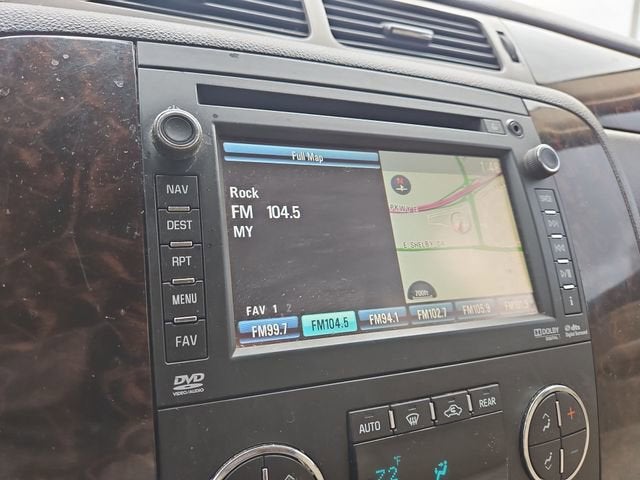 Clean CARFAX. Summit White This Yukon XL Denali is nicely equipped with Autoride Suspension Package (Automatic Air Level Control), Preferred Equipment Group 5SA (2nd Row Power Seat Release Only, 2nd Row Reclining Captain's Bucket Seats, Body-Color Power-Adjustable Heated Outside Mirrors, Color-Keyed Heated Leather-Wrapped Steering Wheel, Front Round Halogen Fog Lamps, Heated & Cooled Driver & Front Passenger Seats, Heated 2nd Row Seats, Heavy-Duty Air-to-Oil Auxiliary Transmission Oil Cooler, Heavy-Duty Air-to-Oil External Engine Oil Cooler, Luggage Rack Center Rails, Power-Adjustable Pedals For Accelerator & Brake, Rear Power-Operated Liftgate, Remote Vehicle Starter System, and Universal Home Remote), Sun, Entertainment & Destinations Package (3rd Row DVD Screen, Inside Rear-View Auto-Dimming Mirror, Power Tilt-Sliding Sunroof w/Express-Open/Close, and Rear-Seat DVD Player Entertainment System), 10 Speakers, 12-Way Power Driver Seat Adjuster, 12-Way Power Front Passenger Seat Adjuster, 20 x 8.5 Chrome Aluminum Wheels, 3.42 Rear Axle Ratio, 3rd row seats: split-bench, 4-Wheel Disc Brakes, ABS brakes, Adjustable pedals, Air Conditioning, Alloy wheels, AM/FM radio: SiriusXM, Auto-dimming door mirrors, Auto-dimming Rear-View mirror, Auto-leveling suspension, Automatic temperature control, Bodyside moldings, Bumpers: body-color, CD player, Chrome wheels, Compass, Delay-off headlights, Driver door bin, Driver vanity mirror, Dual front impact airbags, Dual front side impact airbags, DVD-Audio, Electronic Stability Control, Emergency communication system: OnStar Directions & Connections, Exterior Parking Camera Rear, Floor Console w/Storage Area, Front anti-roll bar, Front Bucket Seats, Front Center Armrest, Front dual zone A/C, Front fog lights, Front Full-Feature Reclining Bucket Seats, Front reading lights, Front wheel independent suspension, Fully automatic headlights, Garage door transmitter, Heated door mirrors, Heated front seats, Heated rear seats, Heated steering wheel, Illuminated entry, Leather Shift Knob, Leather steering wheel, Low tire pressure warning, Memory seat, Navigation System, NavTraffic, Occupant sensing airbag, Outside temperature display, Overhead airbag, Overhead console, Panic alarm, Passenger door bin, Passenger vanity mirror, Pedal memory, Perforated Nuance Leather-Appointed Seat Trim, Power door mirrors, Power driver seat, Power Liftgate, Power passenger seat, Power steering, Power windows, Radio data system, Radio: AM/FM/SiriusXM Stereo w/CD/Navigation, Rear air conditioning, Rear anti-roll bar, Rear audio controls, Rear reading lights, Rear Vision Camera, Rear window defroster, Rear window wiper, Remote keyless entry, Roof rack, Security system, SiriusXM Satellite Radio, Speed control, Split folding rear seat, Spoiler, Steering wheel memory, Steering wheel mounted audio controls, Tachometer, Tilt steering wheel, Traction control, Trip computer, Turn signal indicator mirrors, USB Port, Variably intermittent wipers, Ventilated front seats, and Voltmeter. Price does not include licensing costs, registration fees, taxes and dealer doc fee of $899.50 which are to be paid by the consumer. Mileage is EPA Estimated.